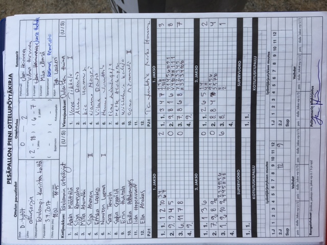 | 14.6.2017 | Toholampi | Kajaani | 1-2 (18-17, 4-5, 2-3) | näytä | |