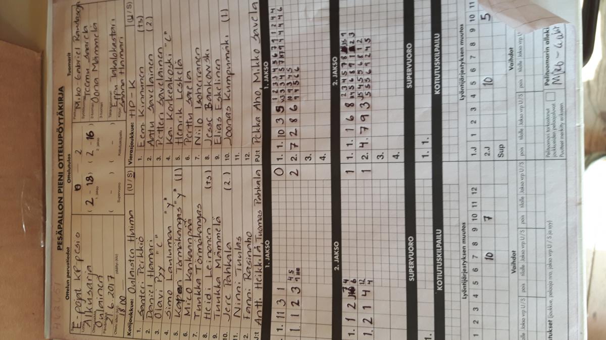 | 20.8.2017 | Kinnula | Oulainen | 0-2 (5-15, 3-12) | näytä | |