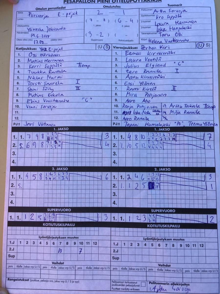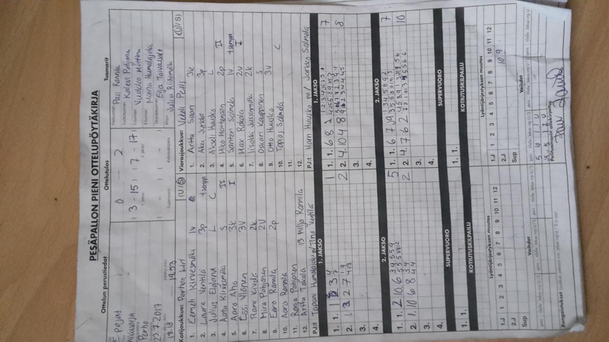 | 15.5.2017 | Toholampi | Perho | 2-1 (7-8, 7-4, 5-2) | näytä | |