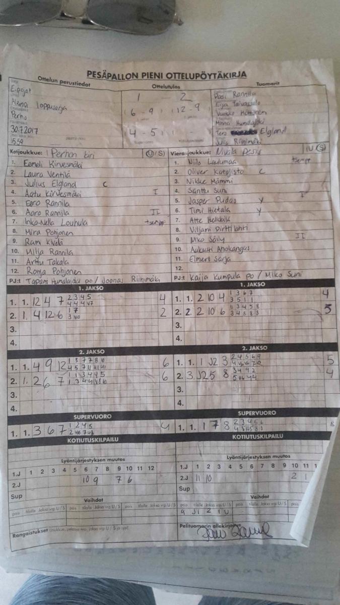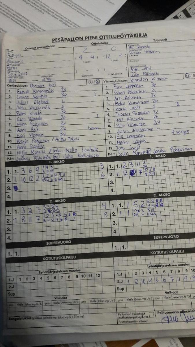 | 30.5.2017 | Perho | Kinnula | 2-0 (9-4, 12-4) | näytä | |
