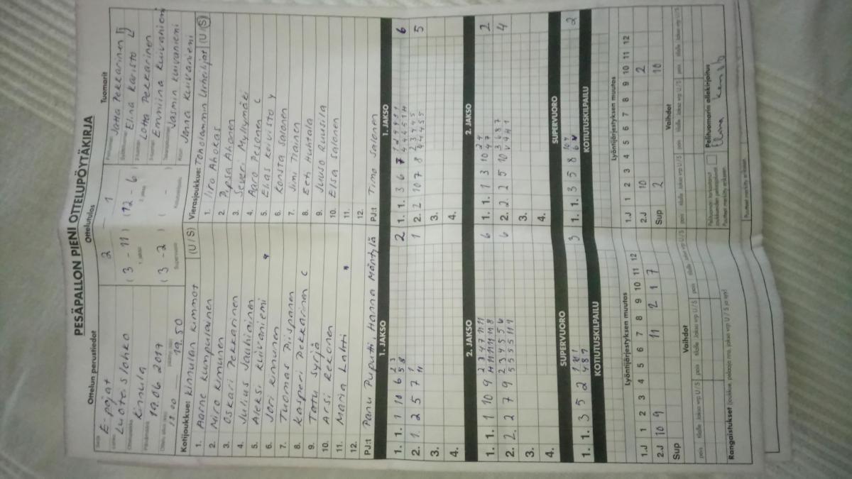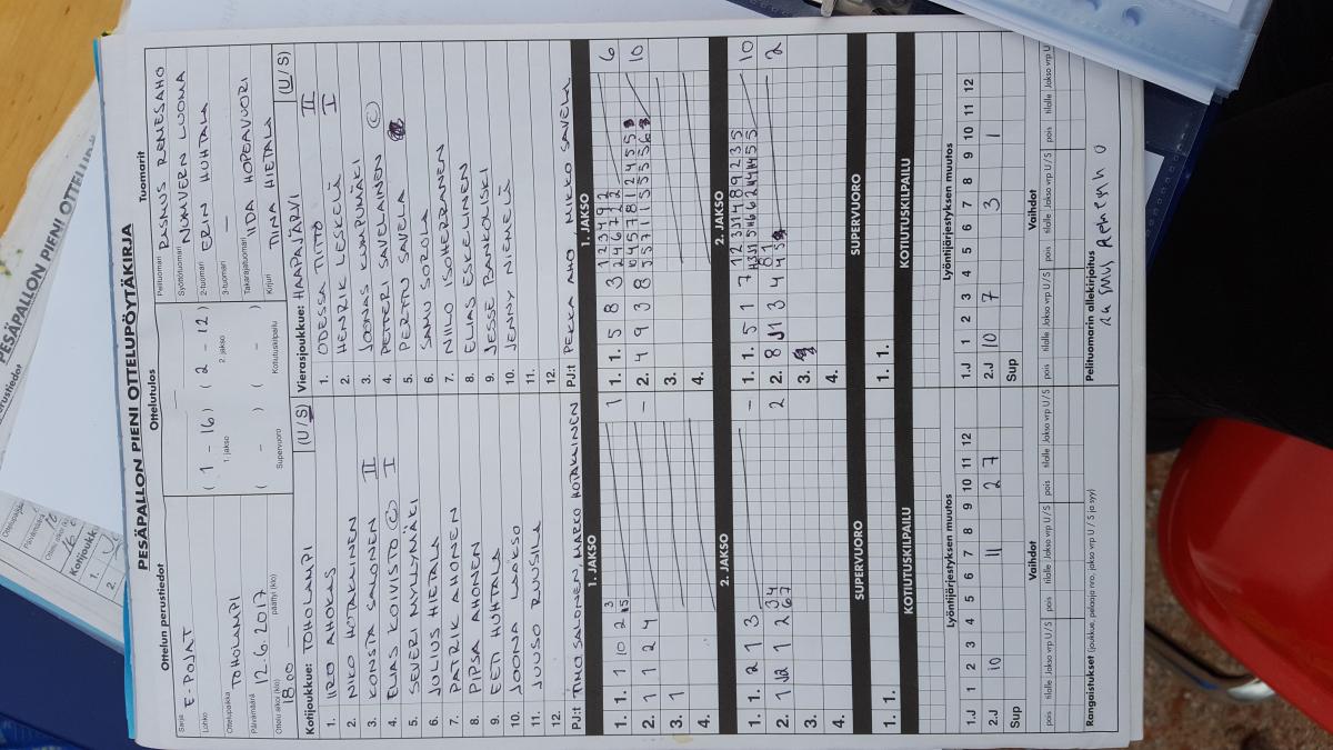 | 12.6.2017 | Toholampi | Haapajärvi | 0-2 (1-16, 2-12) | näytä | |