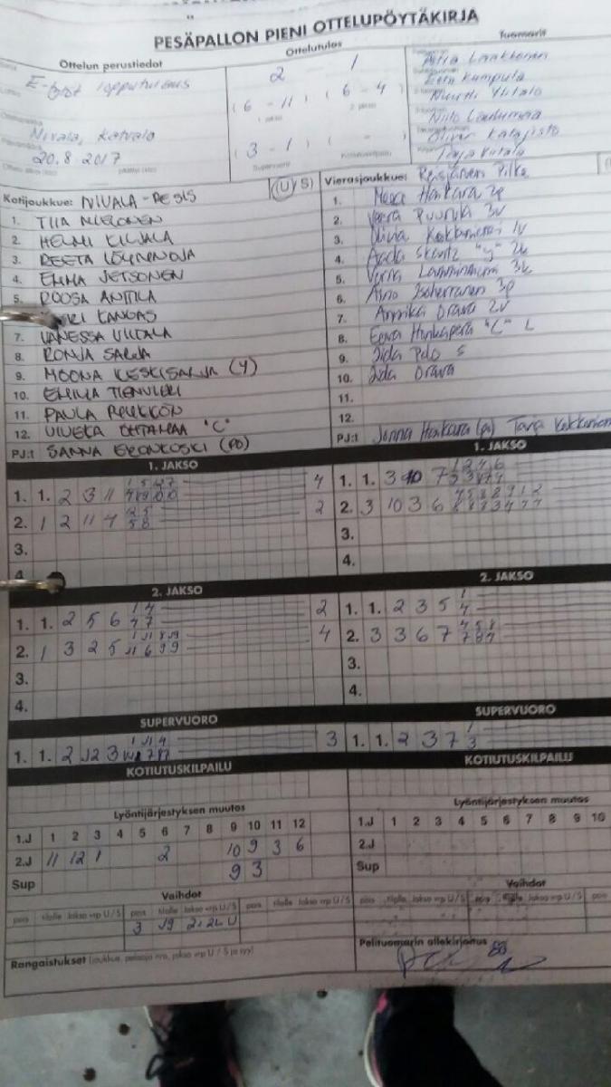| 15.5.2017 | Nivala | Reisjärvi | 2-0 (16-4, 12-7) | näytä | |