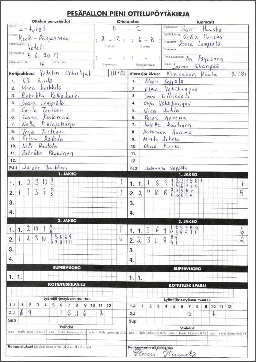| 19.8.2017 | Ylivieska | Veteli | 2-0 (13-4, 5-2) | näytä |