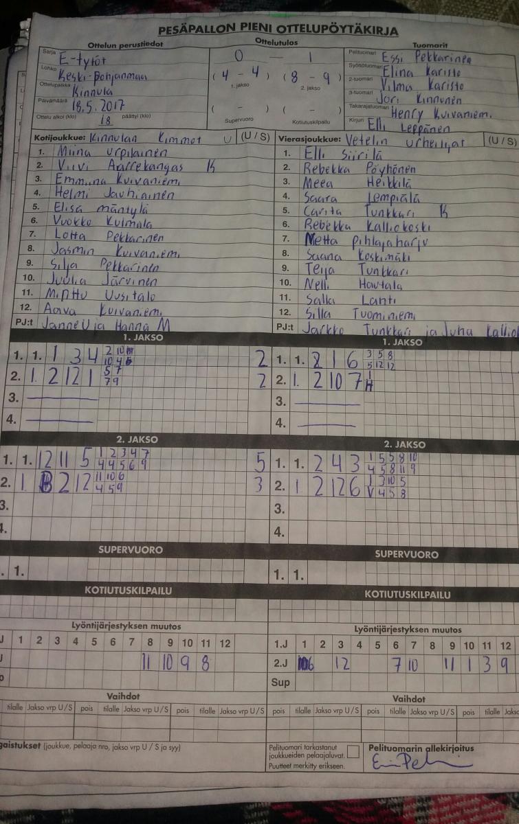 | 18.5.2017 | Kinnula | Veteli | 0-1 (4-4, 8-9) | näytä | |