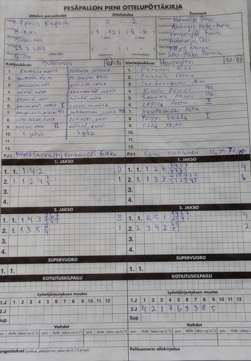 | 23.7.2017 | Oulainen | Haapajärvi 1 | 0-2 (1-10, 4-6) | näytä | |