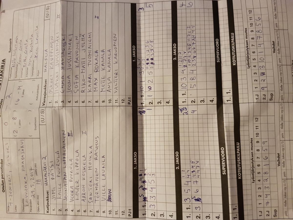 | 29.5.2017 | Haapajärvi 2 | Halsua | 0-2 (2-8, 6-14) | näytä | |