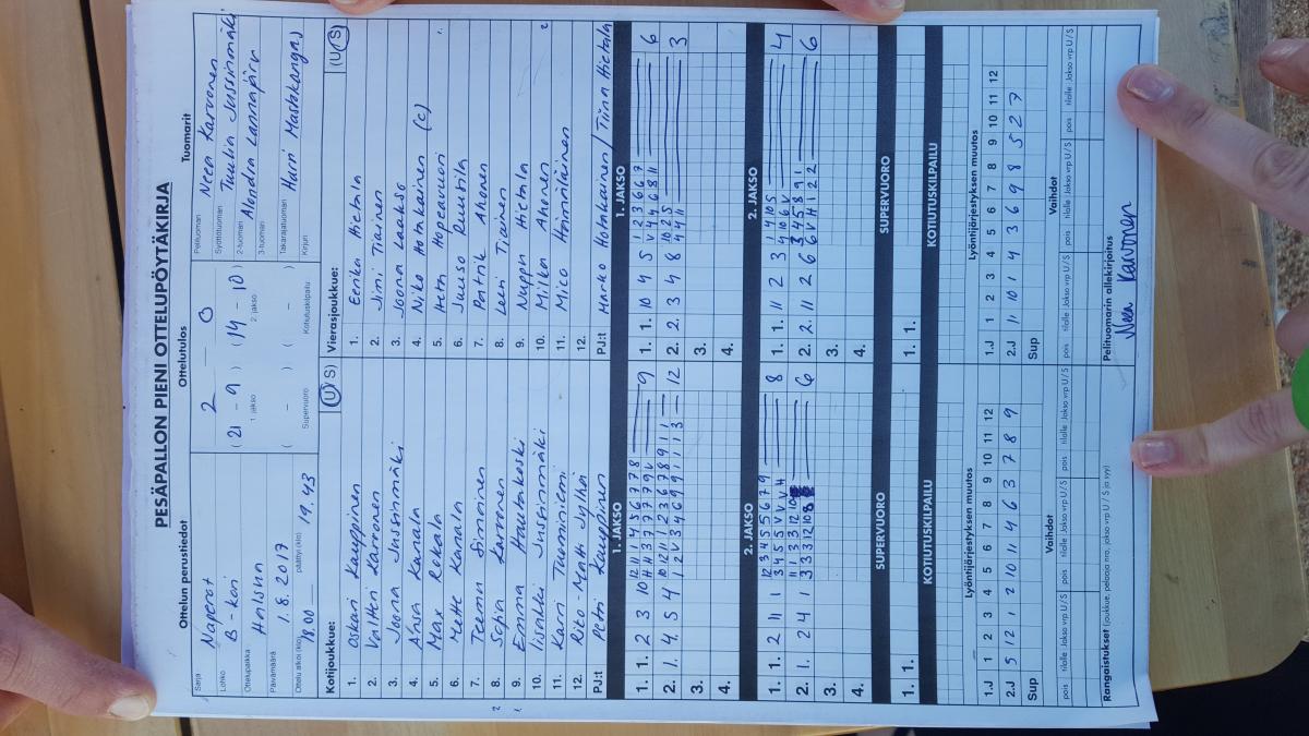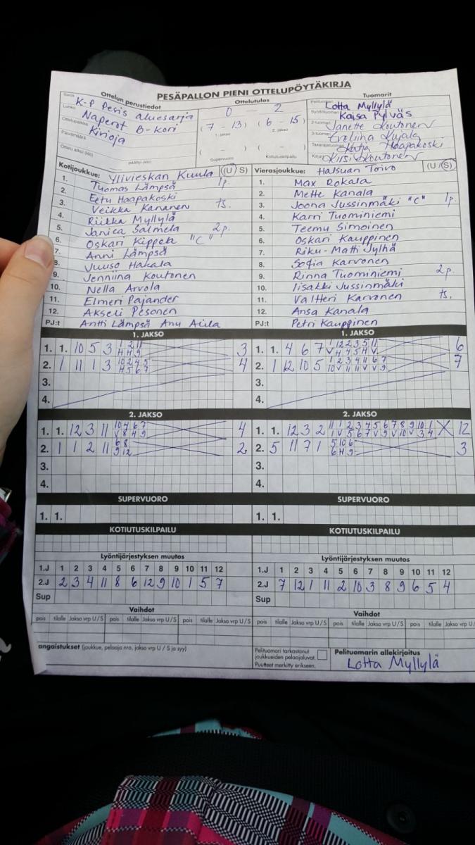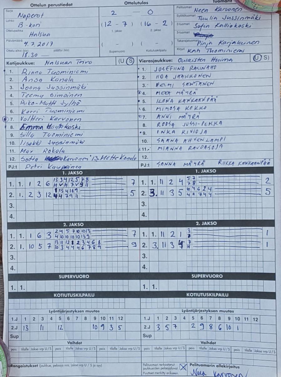 | 19.7.2017 | Nivala | Halsua | 1-2 (8-7, 7-11, 3-4) | ||