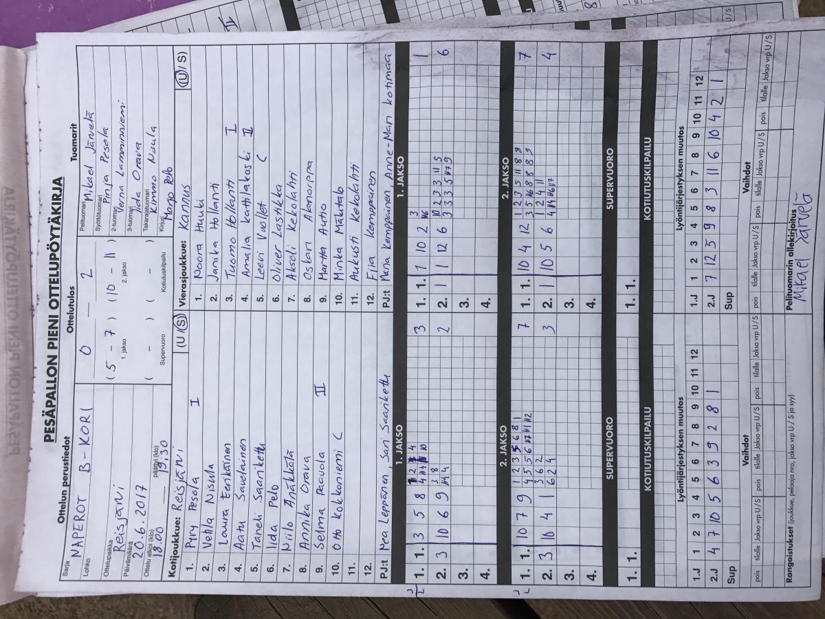 | 17.6.2017 | Kannus | Haapajärvi 2 | 0-2 (4-18, 1-16) | näytä | |