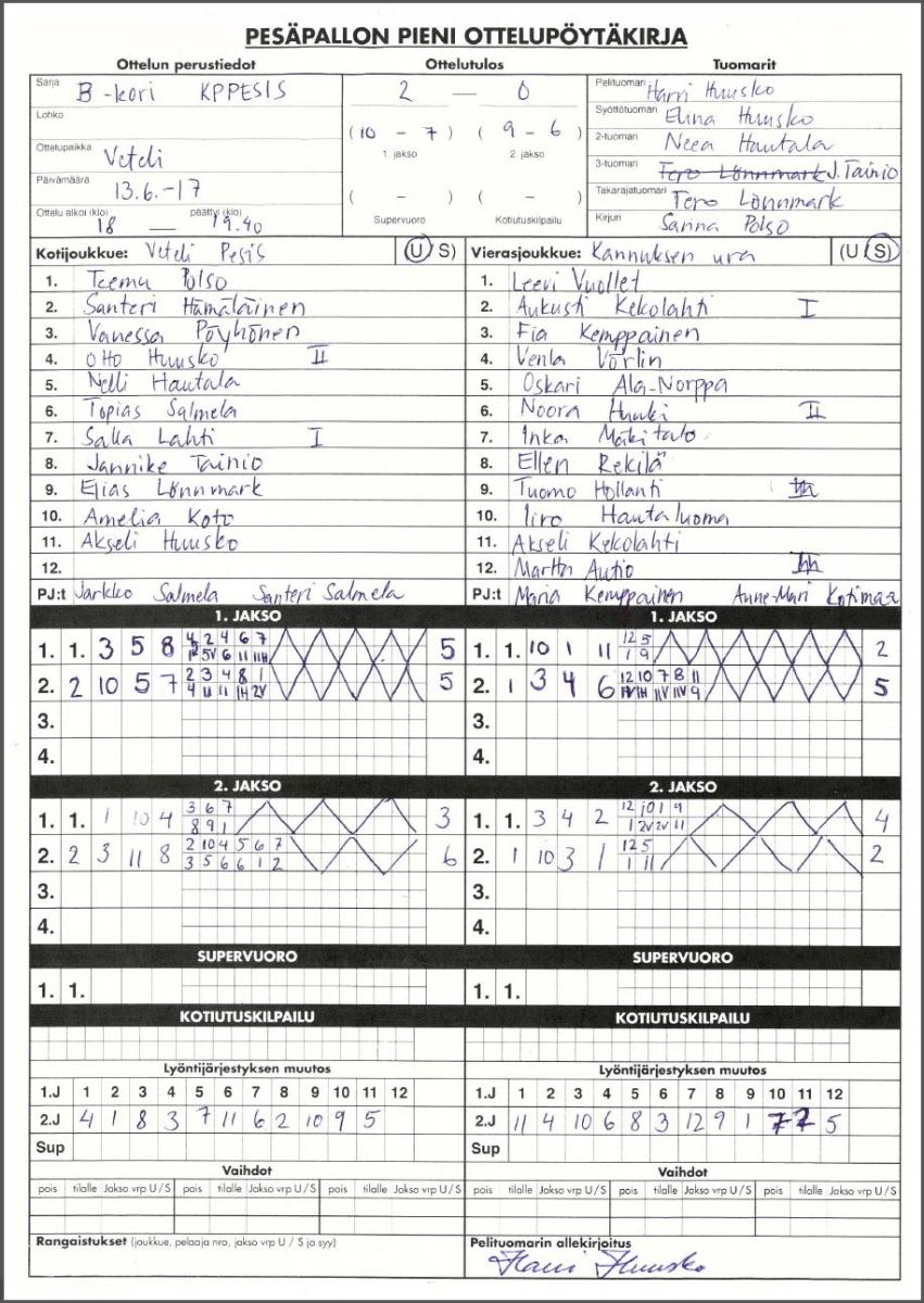 | 13.6.2017 | Veteli | Kannus | 2-0 (10-7, 9-6) | näytä | |
