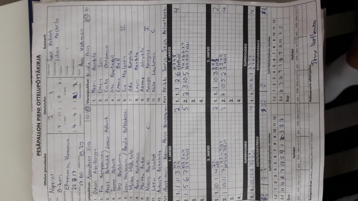 | 8.8.2017 | Kannus | Halsua | 0-2 (7-10, 0-10) | näytä | |