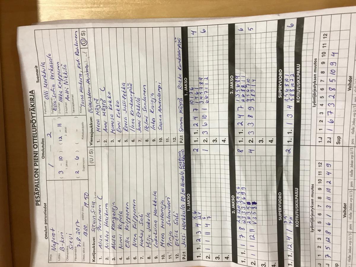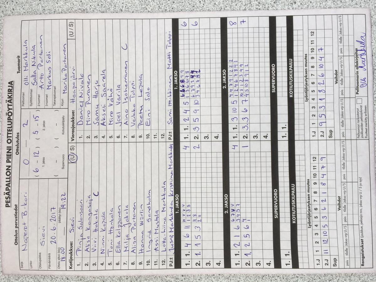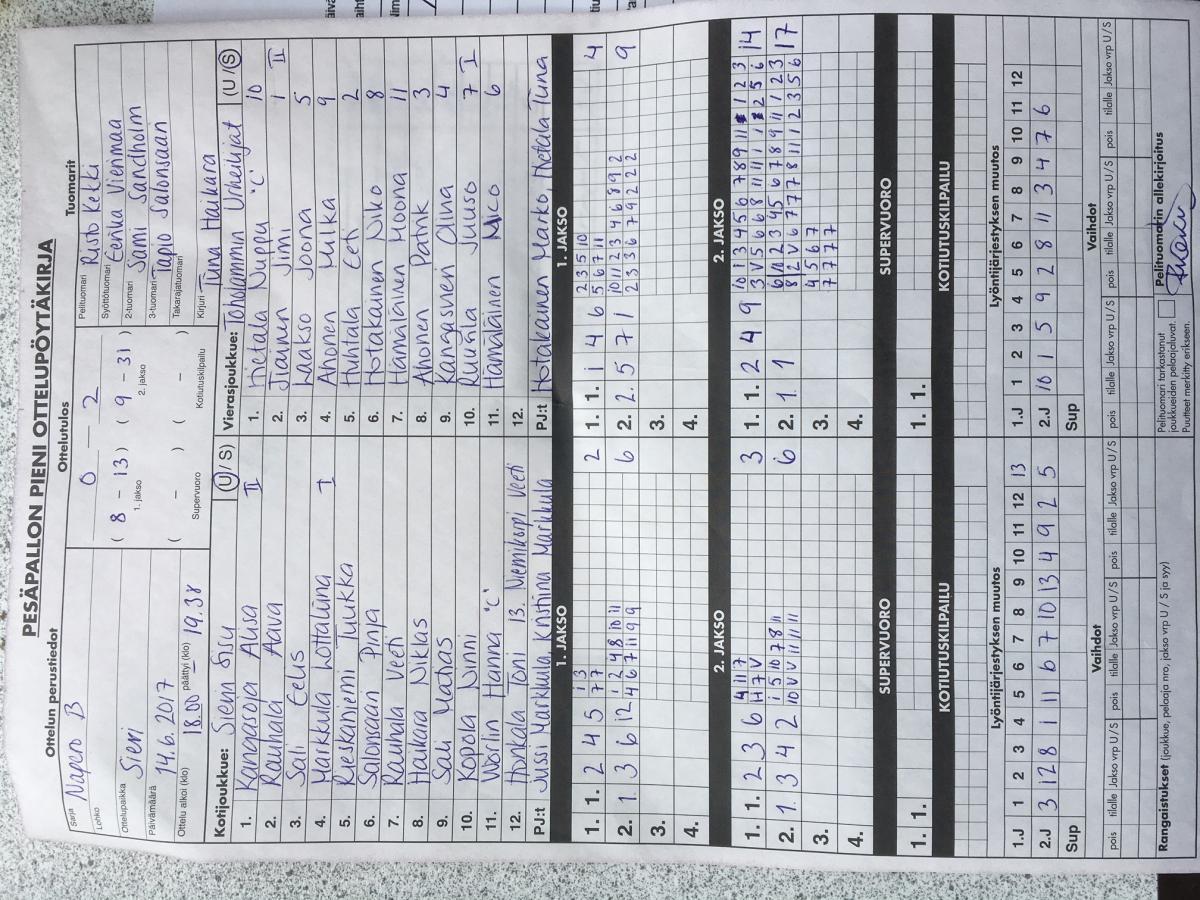| 1.6.2017 | Sievi | Veteli | 0-2 (6-14, 6-13) | näytä | |