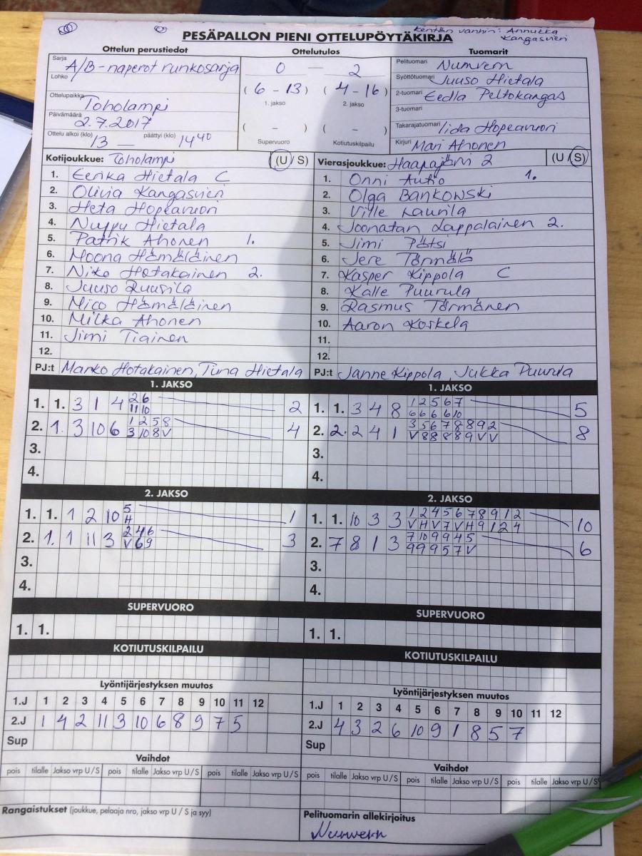 | 2.7.2017 | Toholampi | Haapajärvi 2 | 0-2 (6-13, 4-16) | näytä | |