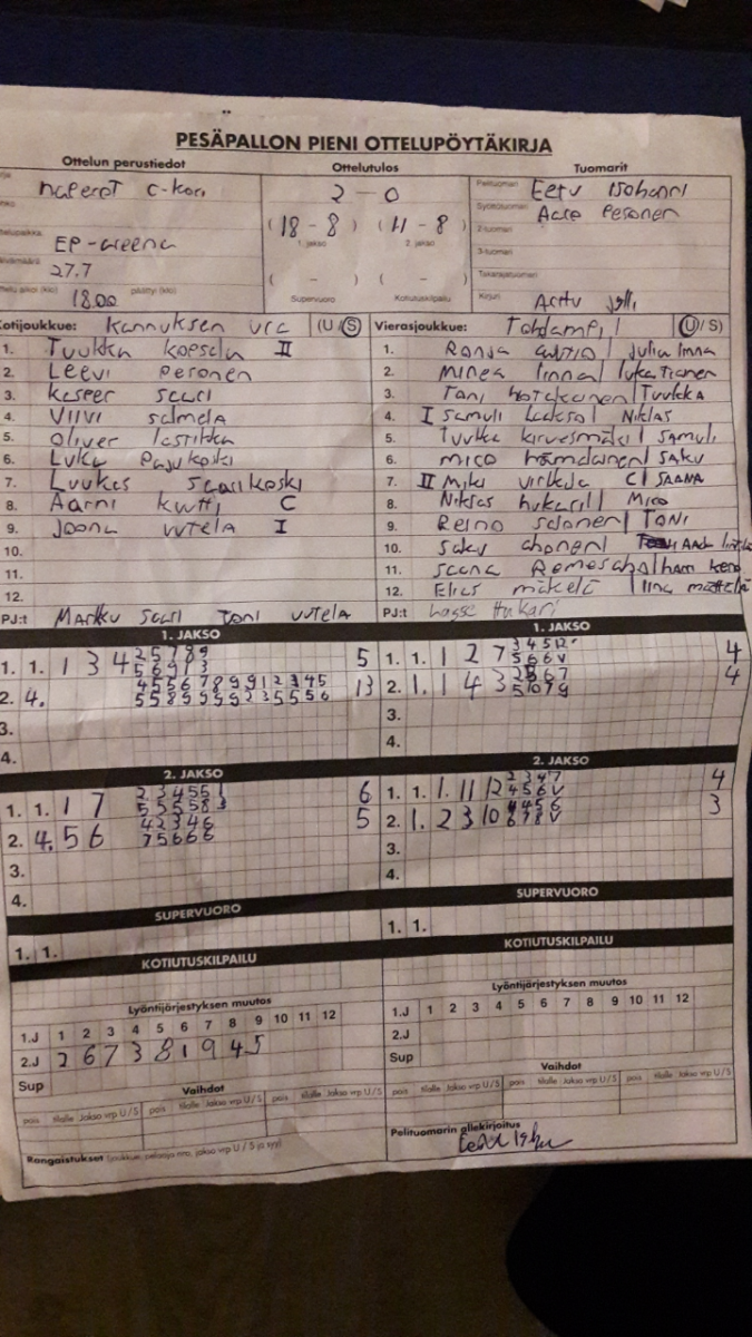 | 27.7.2017 | Kannus 1 | Toholampi | 2-0 (18-8, 11-8) | näytä | |