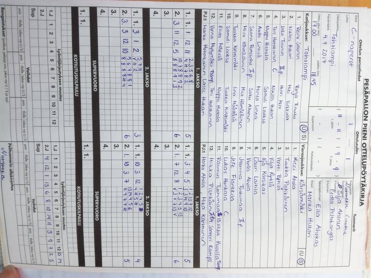 | 4.7.2017 | Toholampi | Kärsämäki | 0-0 (11-11, 9-9, 0-0) | näytä | |