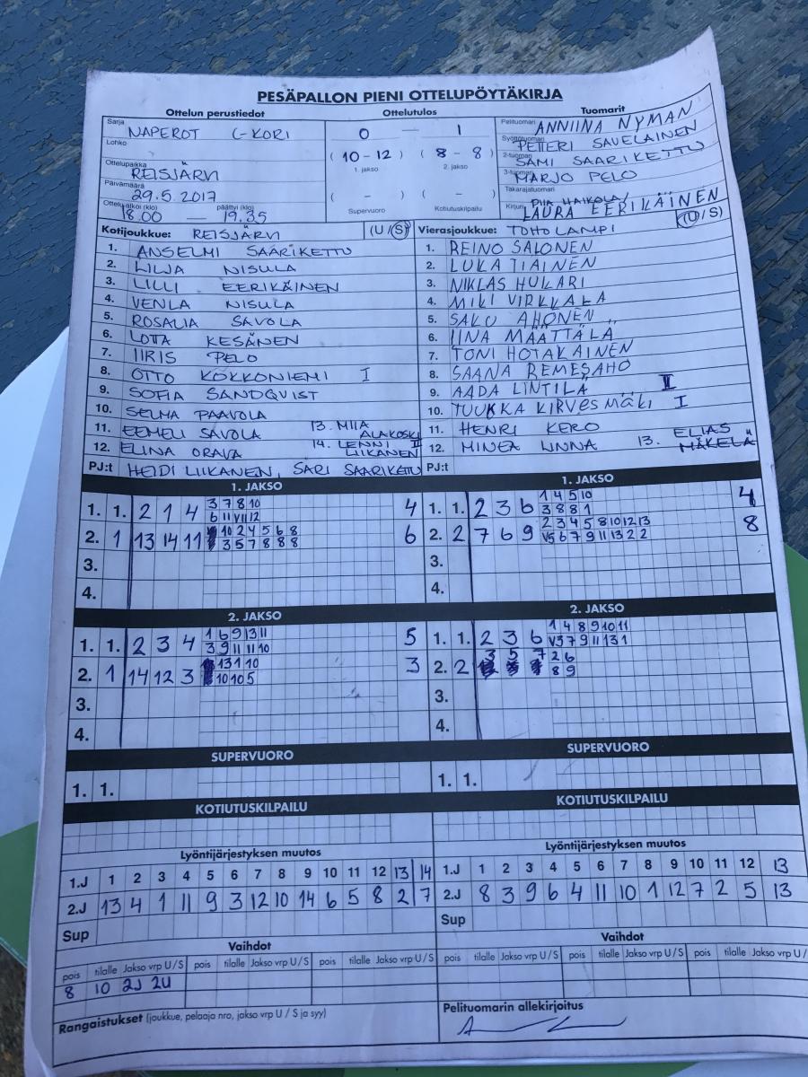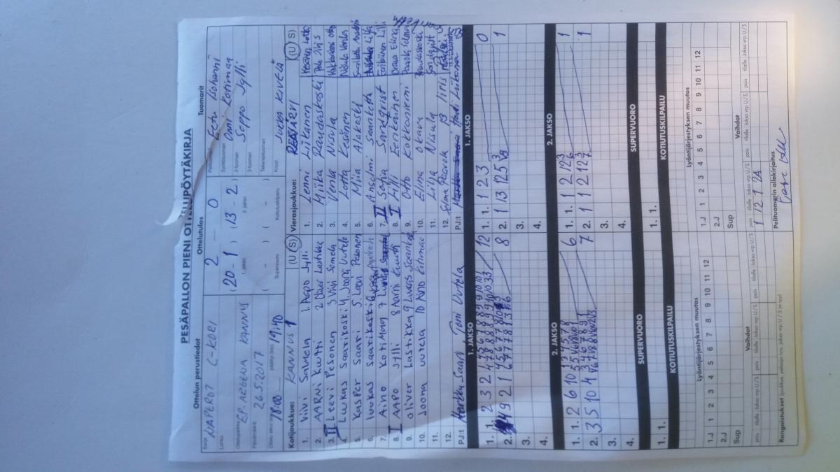 | 27.7.2017 | Haapajärvi | Reisjärvi | 2-0 (14-8, 15-7) | näytä | |