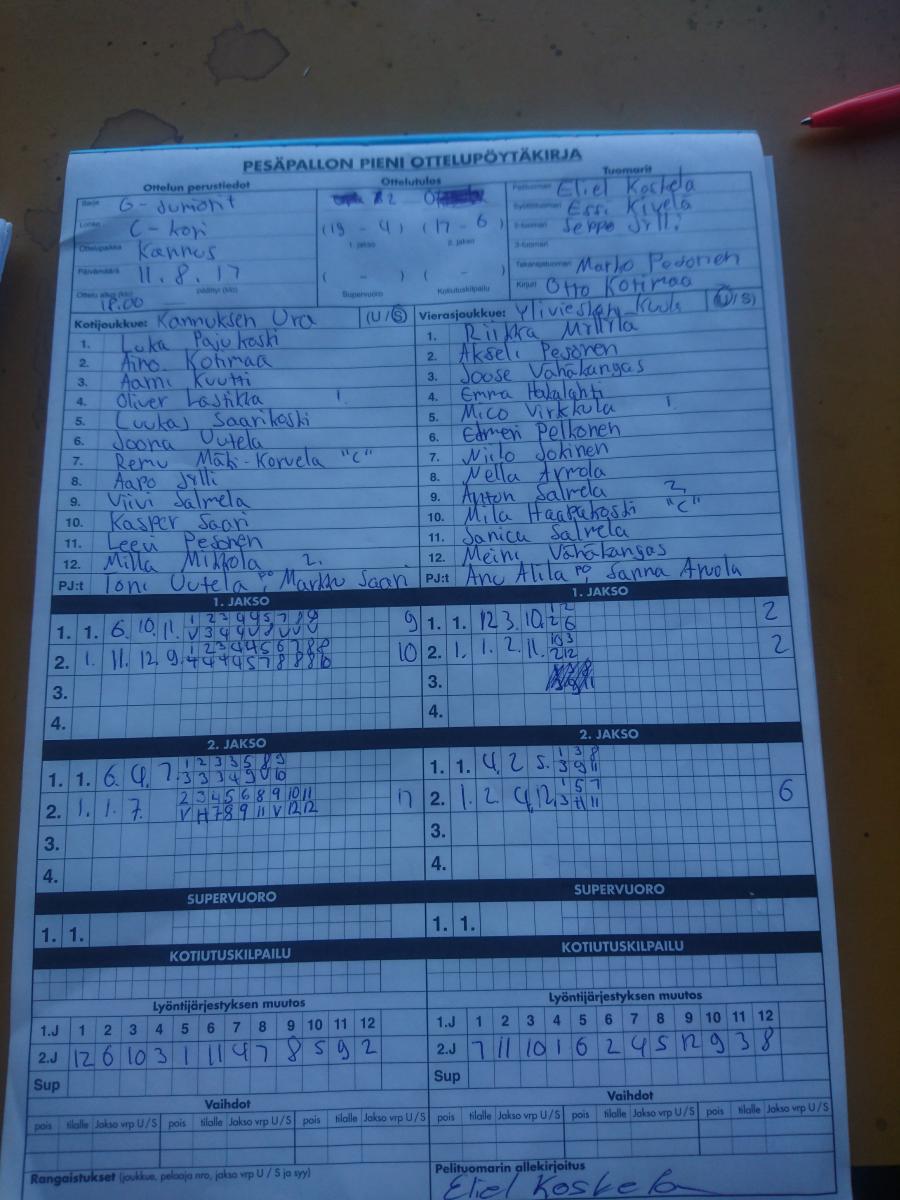 | 19.6.2017 | Kärsämäki | Reisjärvi | 2-0 (17-3, 7-2) | näytä | |