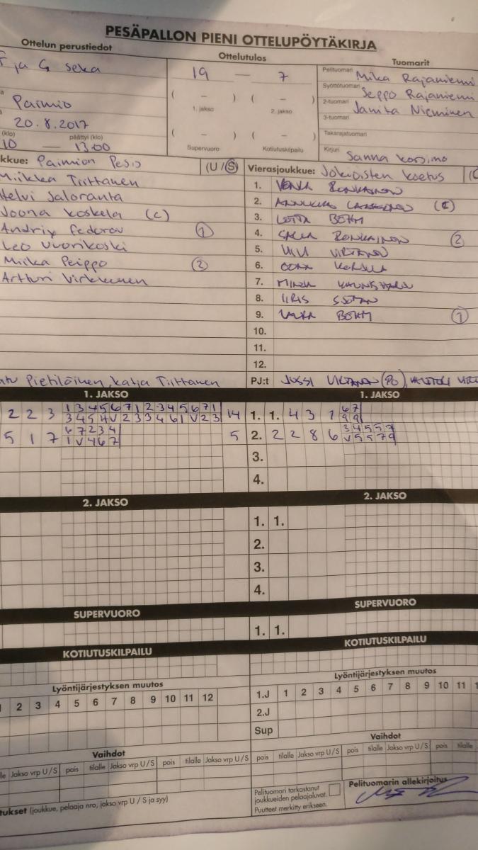 | 8.7.2017 | Loimaa | Jokioinen | 10-10 |