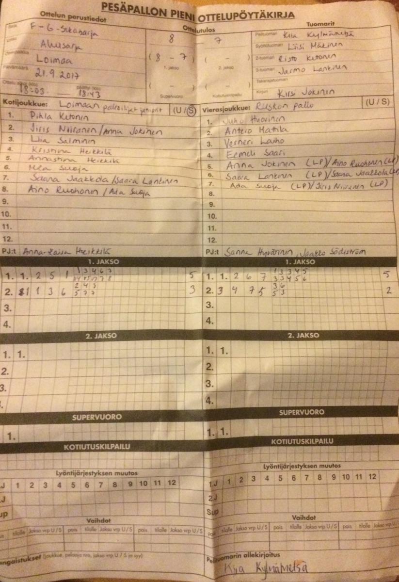 | 2.9.2017 | Loimaa | Merimasku | 12-5 | ||