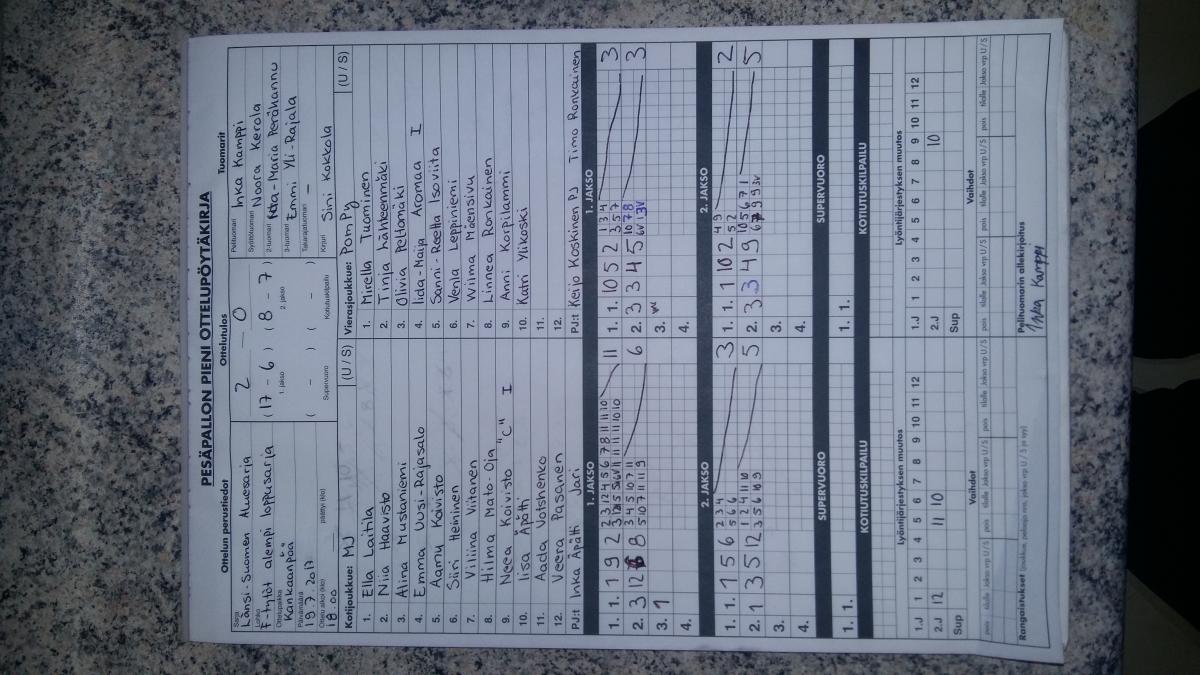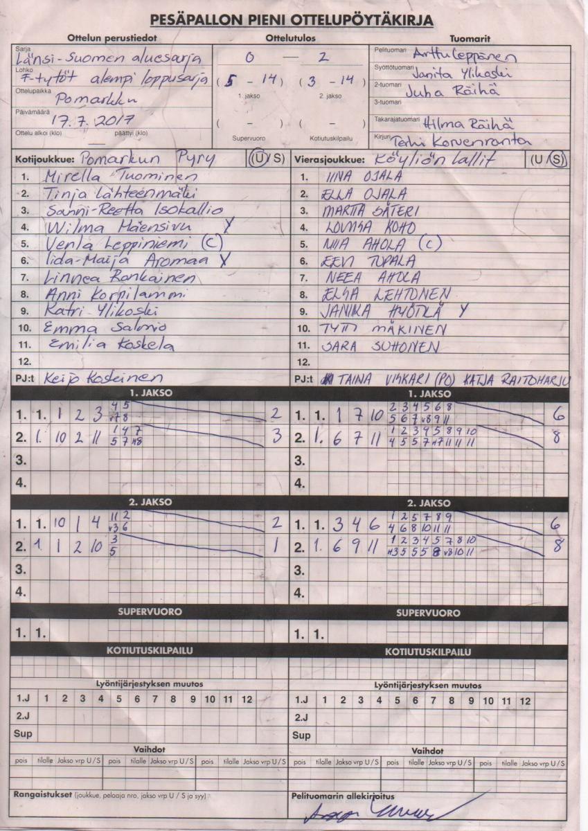 | 19.7.2017 18:00 | MJ G-tytöt | PomPy G-tytöt | 2-0 (17-6, 8-7) | näytä | |