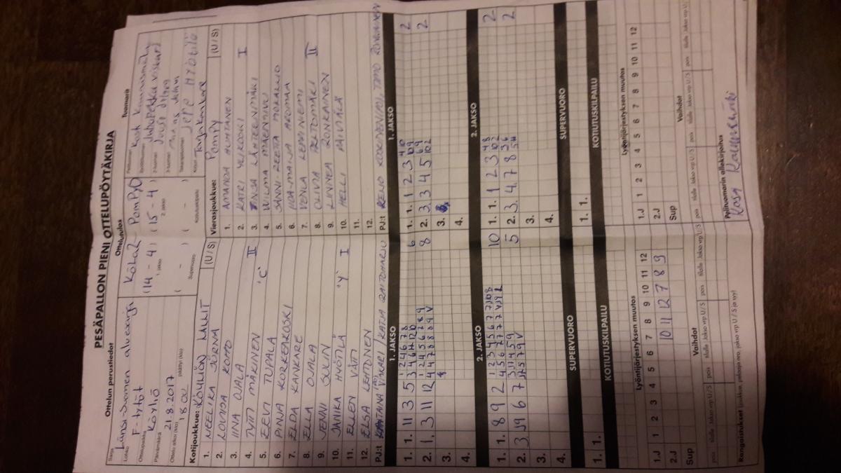 | 14.8.2017 18:00 | LaJy F-tytöt | PomPy G-tytöt | 2-0 (11-3, 17-5) | näytä | |