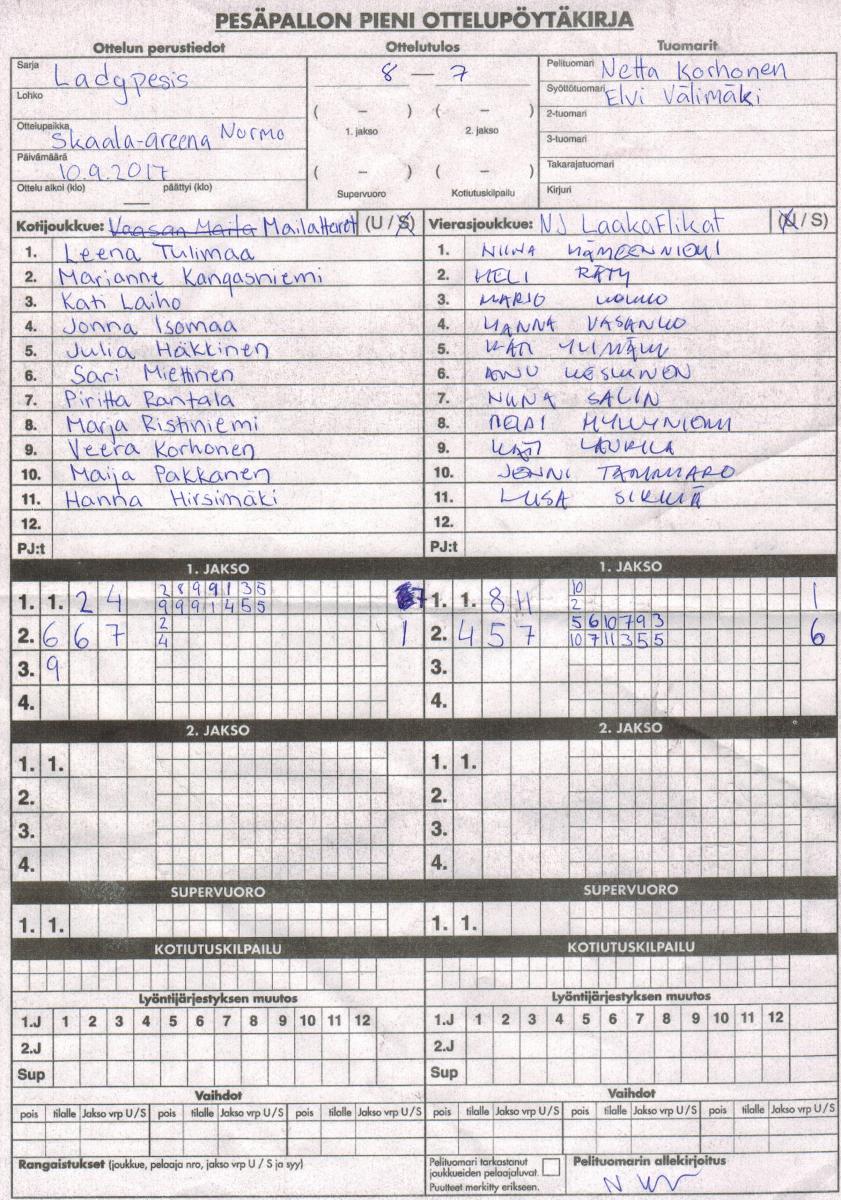 | 15.6.2017 18:00 | VM | Laaka-Flikat | 8-7 | näytä | |