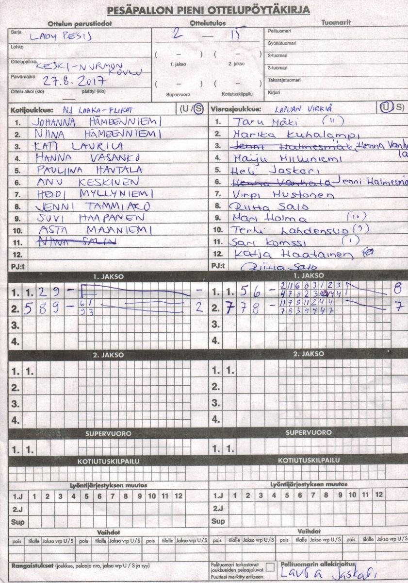 | 15.6.2017 18:00 | Laaka-Flikat | LaVe | 7-9 | näytä | |