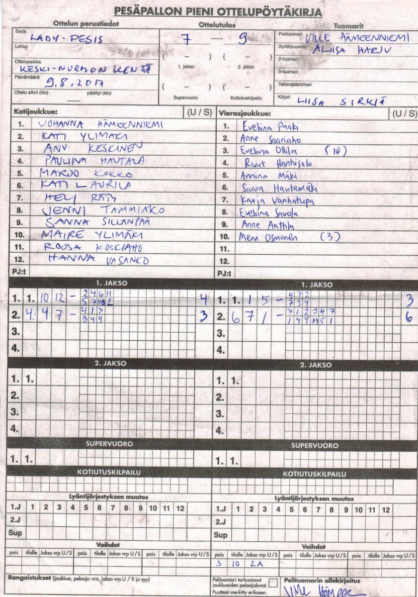 | 15.6.2017 18:00 | LaVe | Laaka-Flikat | 2-9 | näytä | |