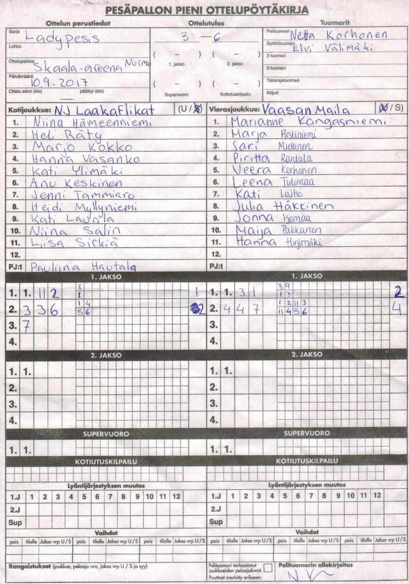 | 15.6.2017 18:00 | Laaka-Flikat | VM | 3-6 | näytä | |