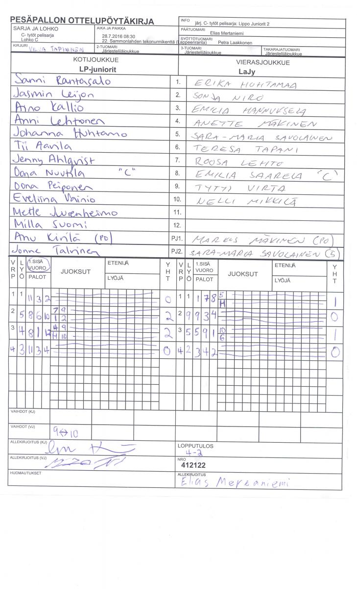 | 28.7.2016 08:30 | C- tytöt pelisarja | Lohko C | LP-juniorit | LaJy | 4-2 | Lippo Juniorit 2 | näytä |