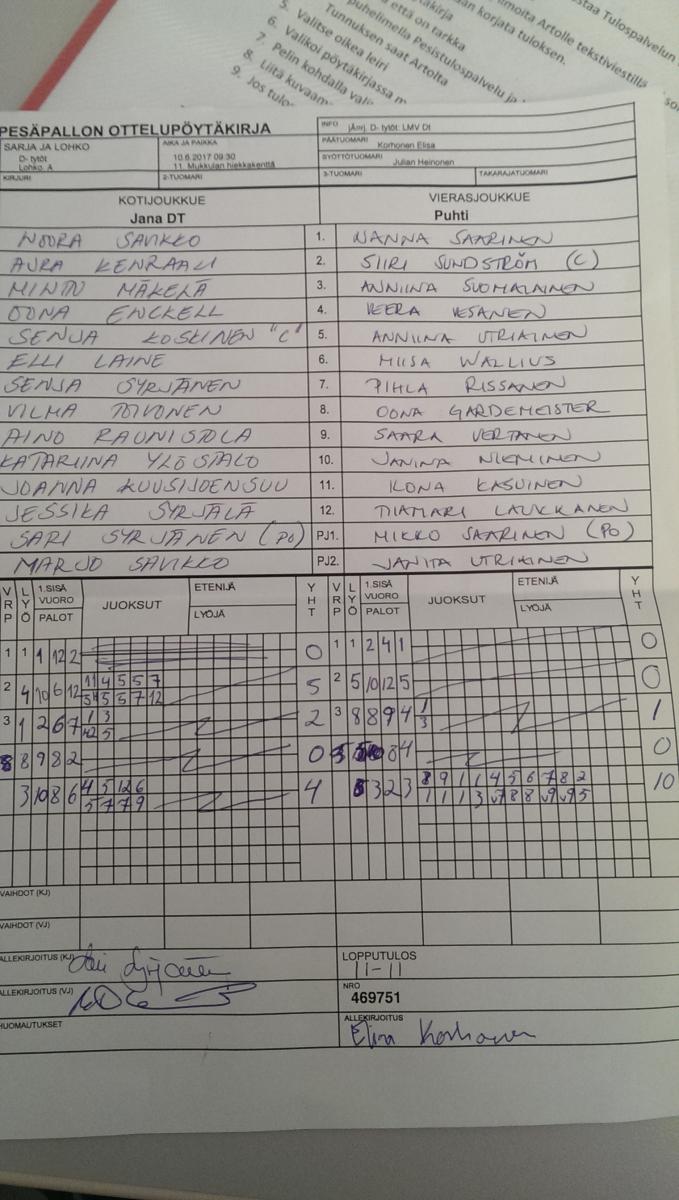| 10.6.2017 09:30 | D- tytöt | Lohko. A | Jana DT | Puhti | 11-11 | LMV Dt | näytä |