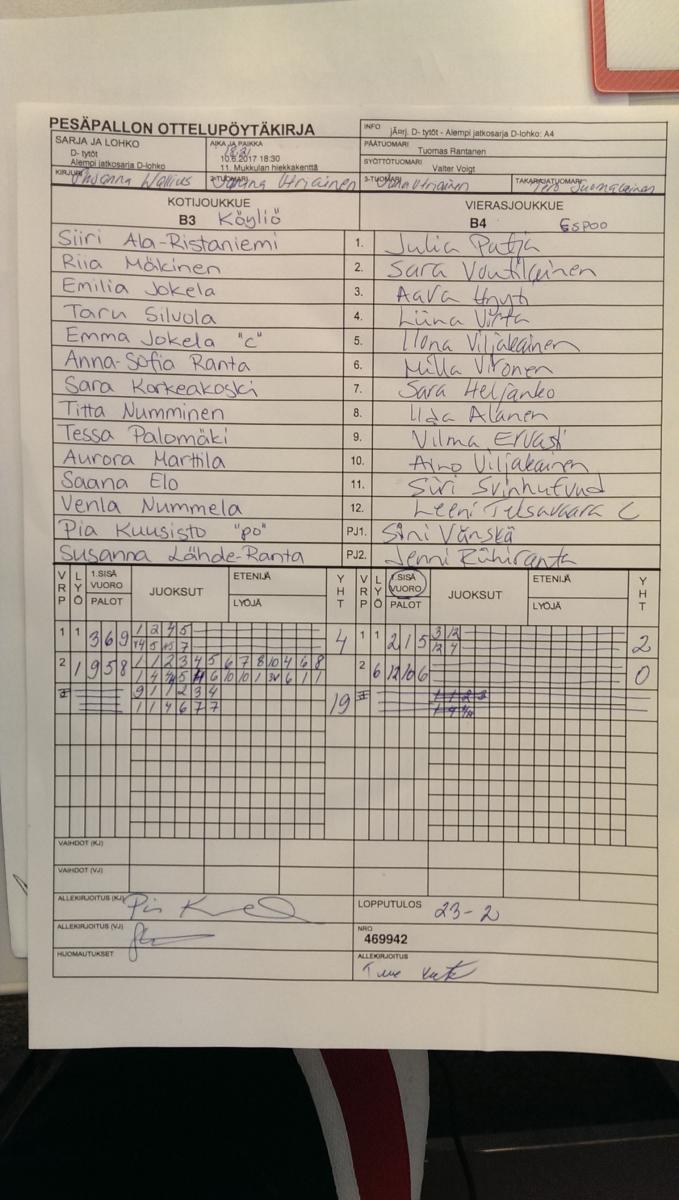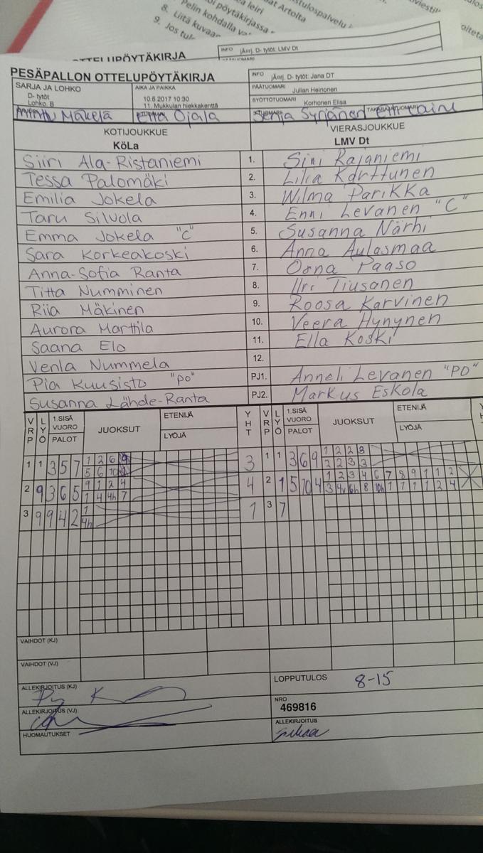 | 10.6.2017 10:30 | D- tytöt | Lohko. B | KöLa | LMV Dt | 8-15 | Jana DT | näytä |