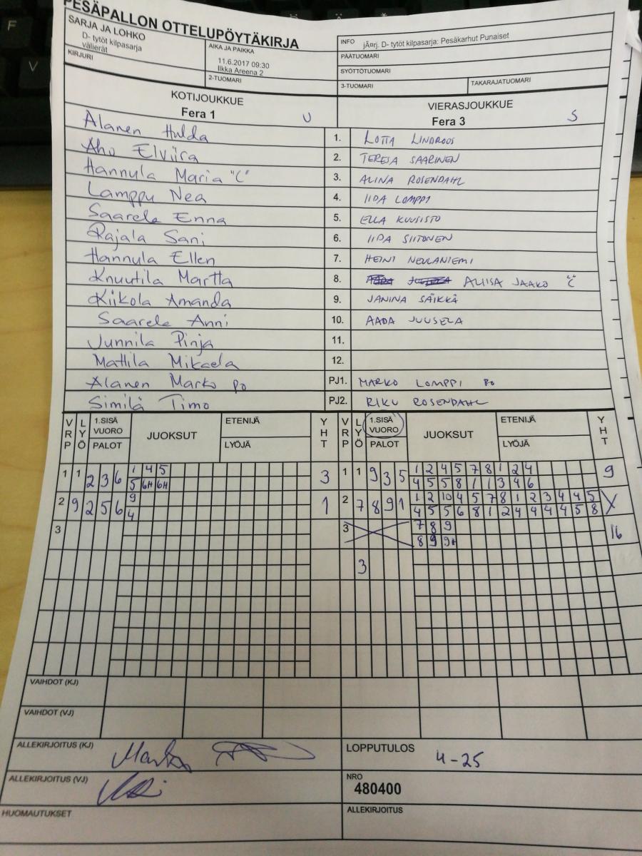 Ottelut kentällä