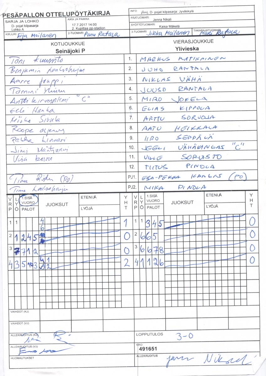 | 8. | Ylivieska | 9 | 2 | 1 | 6 | 30 - 68 | 5 |