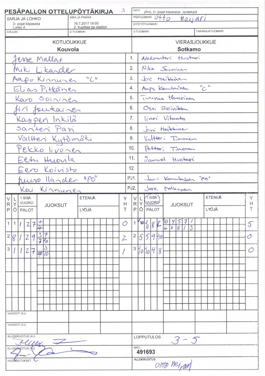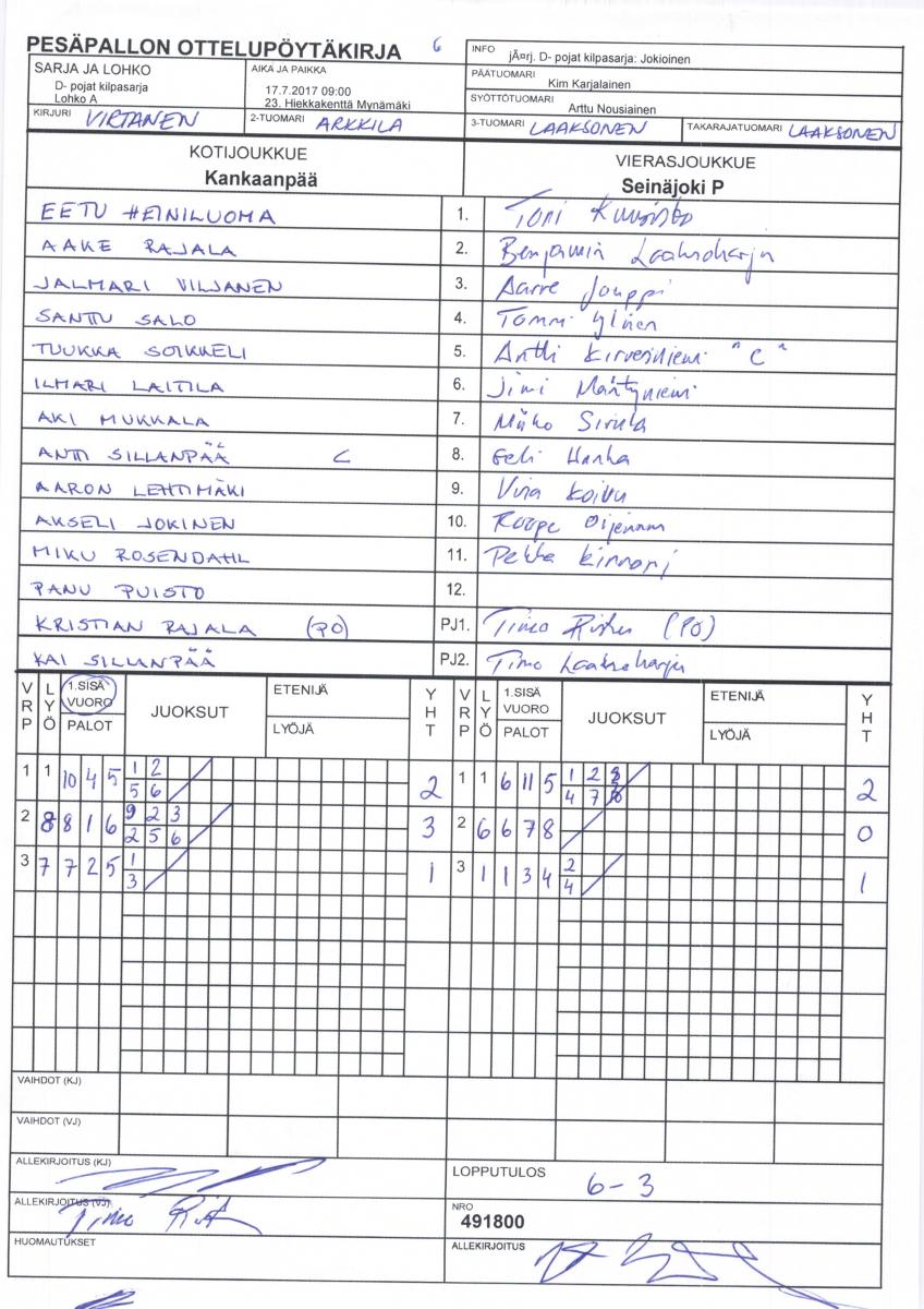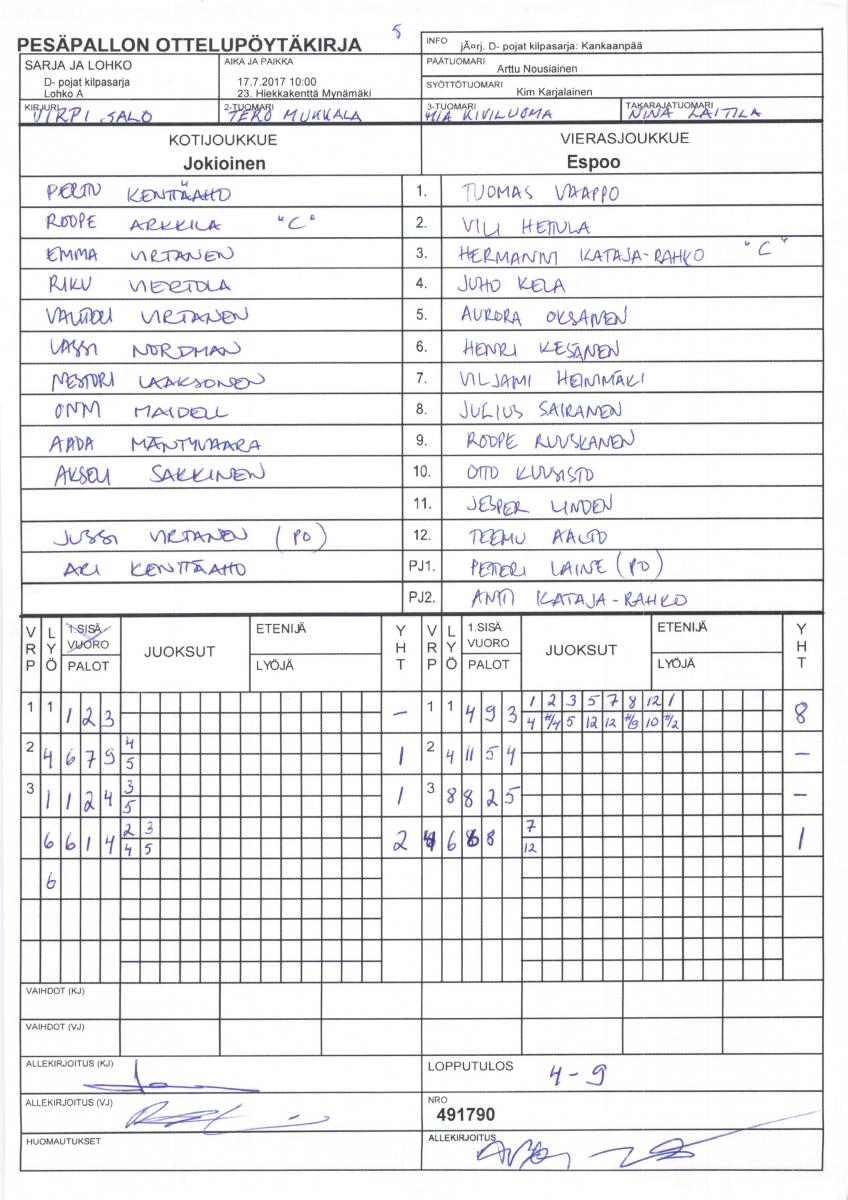 | 4. | Kankaanpää | 9 | 4 | 2 | 3 | 63 - 60 | 10 |