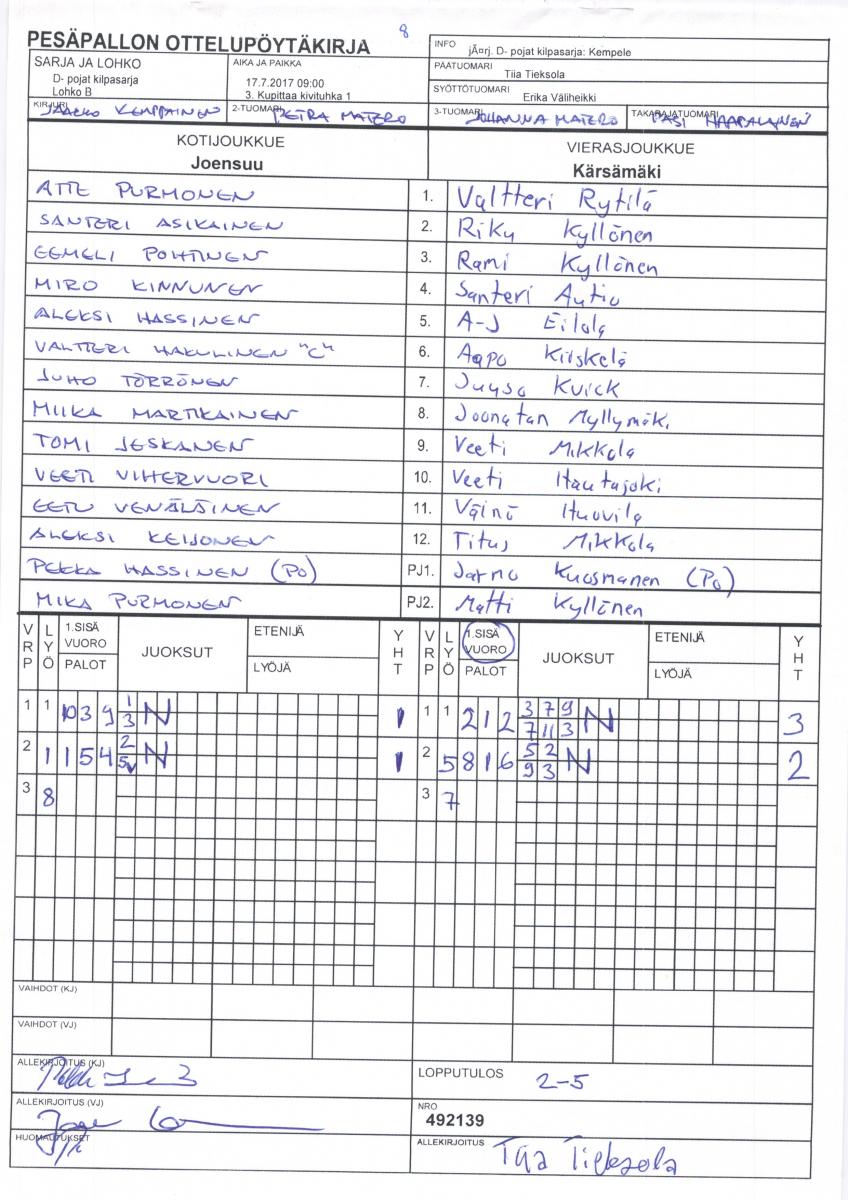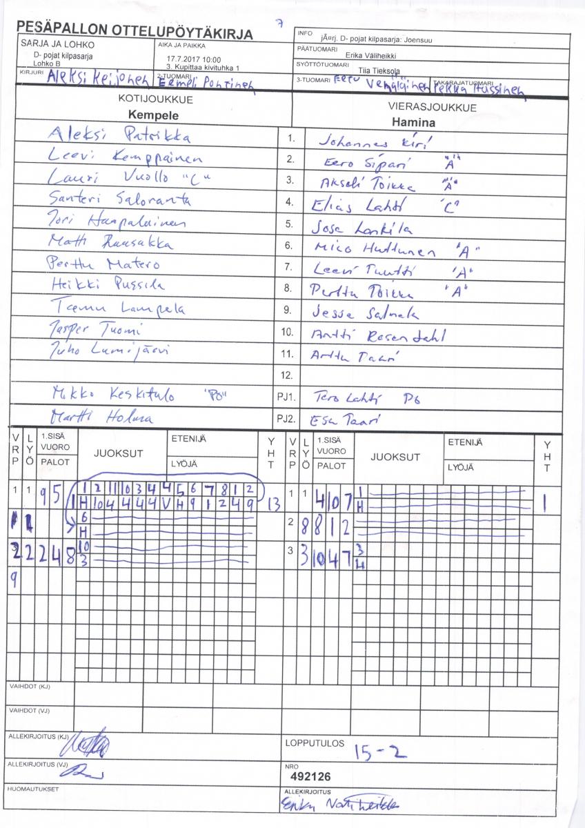 | 1. | Kempele | 9 | 8 | 0 | 1 | 89 - 24 | 16 |