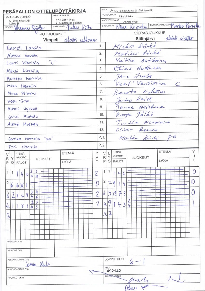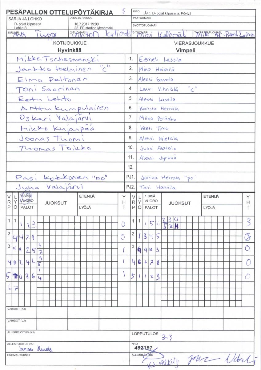 | 5. | Vimpeli | 9 | 5 | 1 | 3 | 62 - 30 | 11 |
