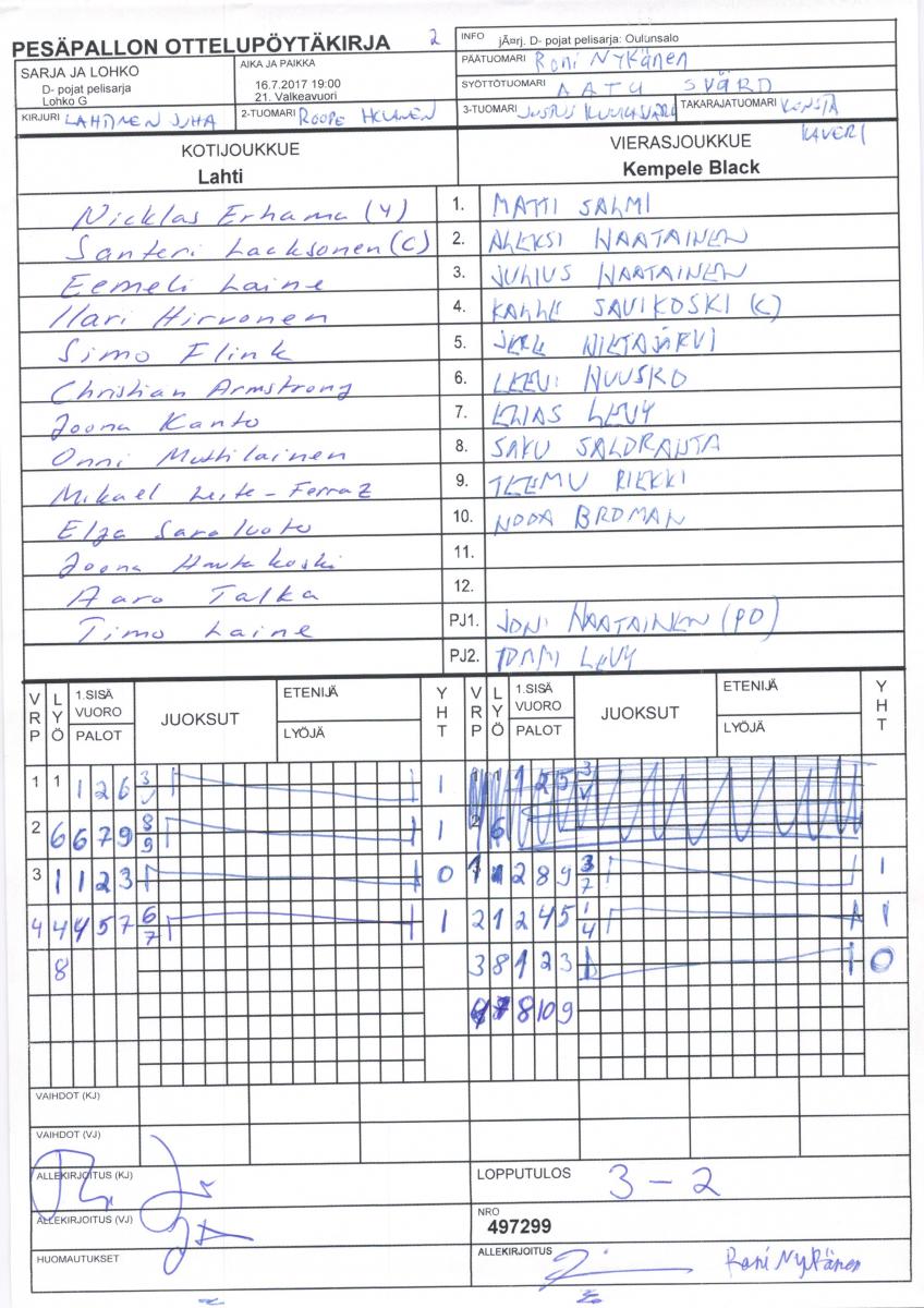 | 4. | Kempele Black | 3 | 0 | 0 | 3 | 7 - 10 | 0 |