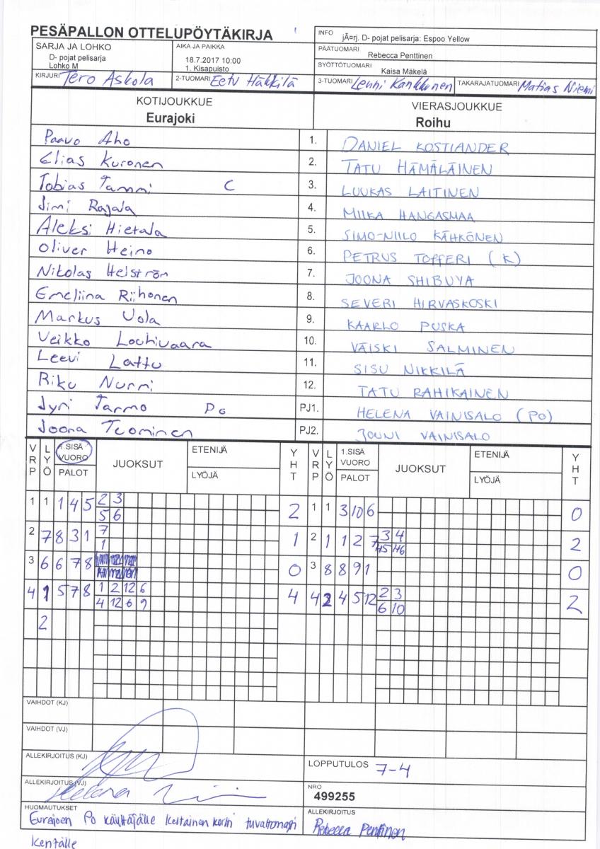 | 2. | Eurajoki | 3 | 2 | 0 | 1 | 22 - 15 | 4 |