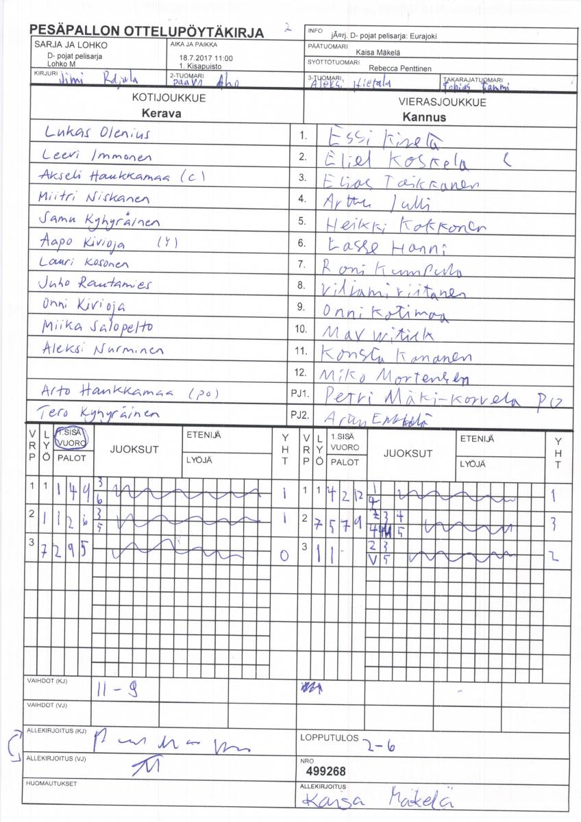| 1. | Kerava | 3 | 2 | 0 | 1 | 40 - 11 | 4 |