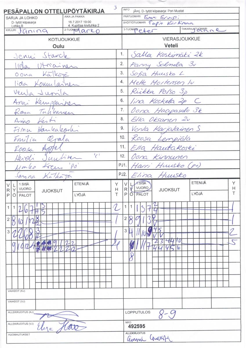 | # | Joukkue | O | V | T | H | JUOKSUT | P |