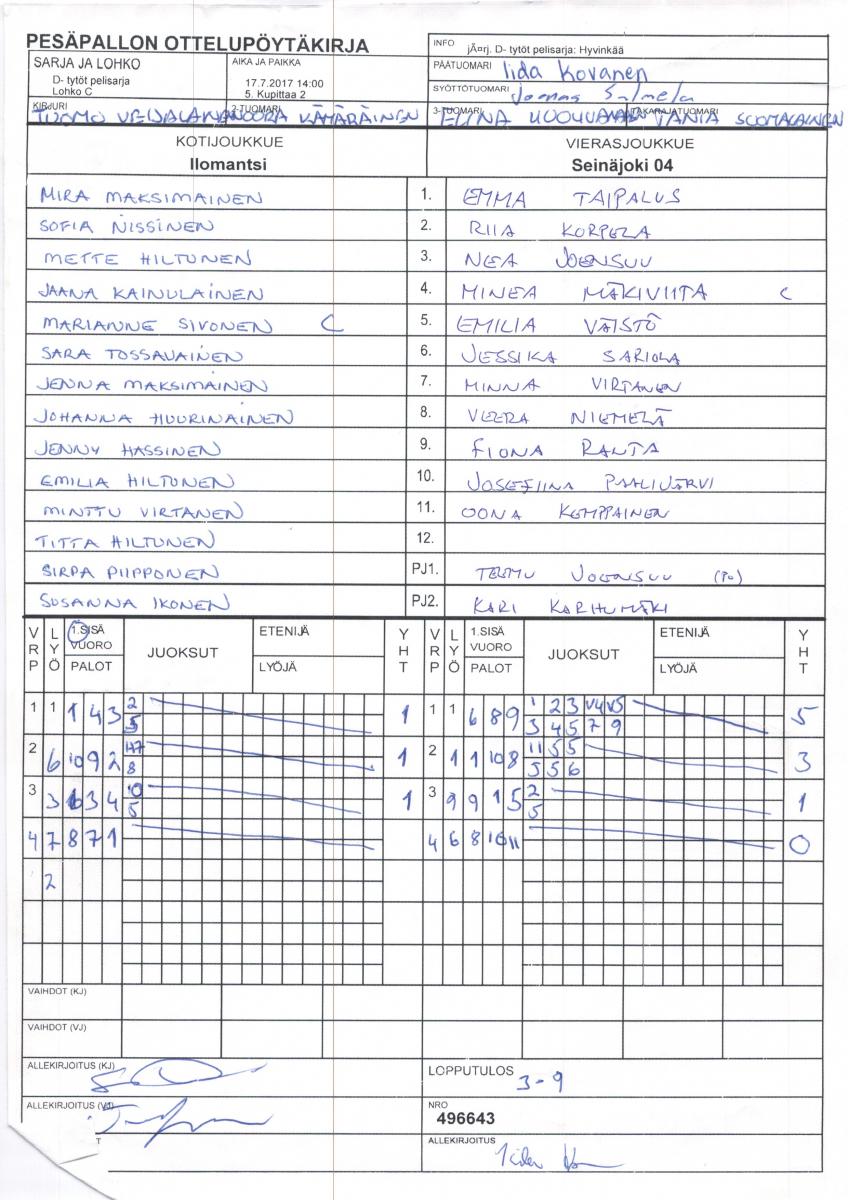 | 4. | Seinäjoki 04 | 6 | 3 | 0 | 3 | 51 - 72 | 6 |