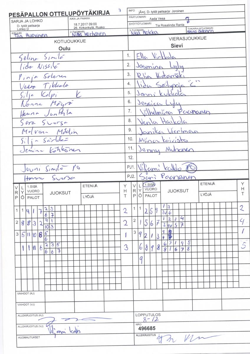 | # | Joukkue | O | V | T | H | JUOKSUT | P |