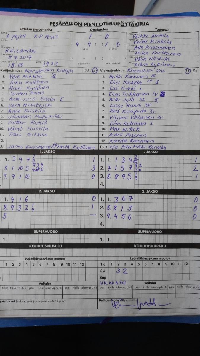 | 462457 | 5.7.2017 | Kärsämäki 1 | Kannus | 1-0 (4-4, 1-0) | näytä |