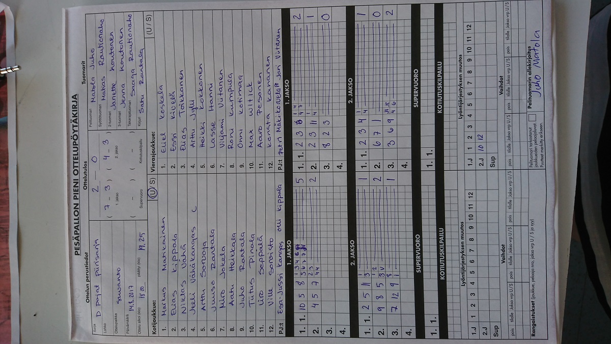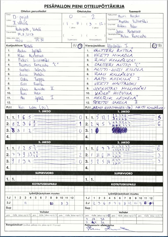 | 490665 | 12.8.2017 | Kärsämäki 1 | Veteli | 2-0 (9-1, 19-2) | näytä |