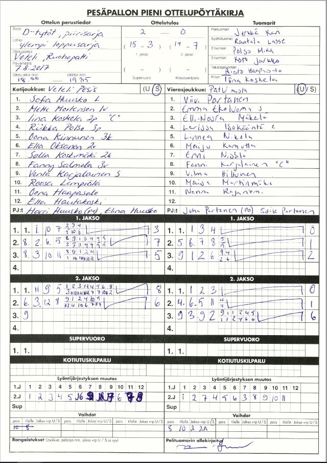 | 462897 | 8.8.2017 | Veteli | Sievi | 2-0 (17-3, 9-8) | näytä |