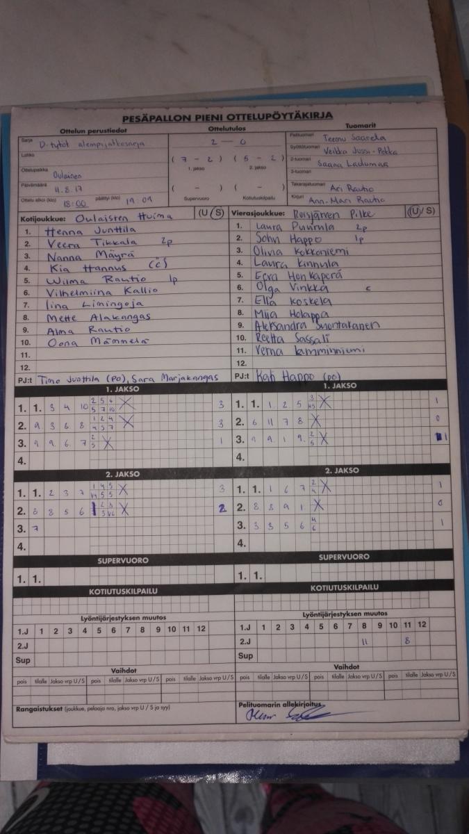| 462994 | 25.7.2017 | Toholampi | Reisjärvi | 2-0 (4-0, 9-5) | näytä |
