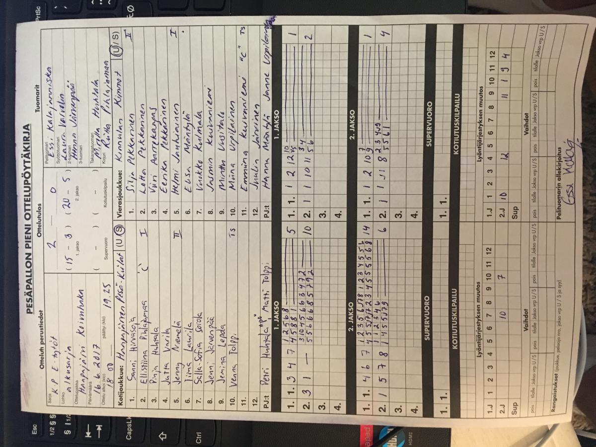 | 464329 | 16.6.2017 | Haapajärvi | Kinnula | 2-0 (15-3, 20-5) | näytä |