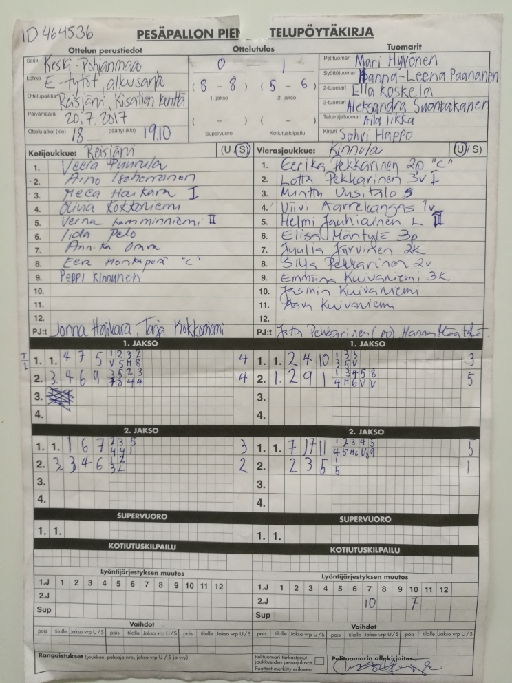 | 464536 | 20.7.2017 | Reisjärvi | Kinnula | 0-1 (8-8, 5-6) | näytä |