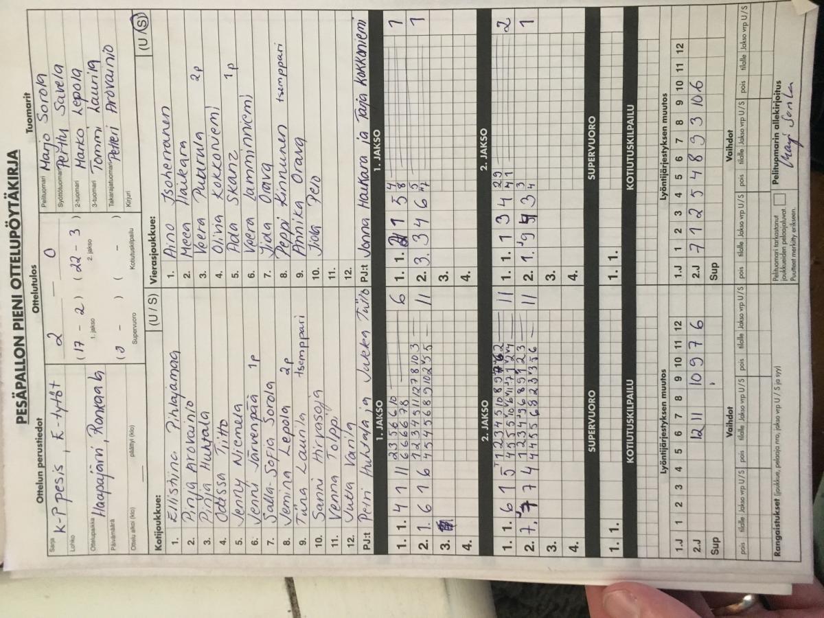 | 464507 | 5.7.2017 | Haapajärvi | Veteli | 2-0 (22-1, 15-1) | näytä |