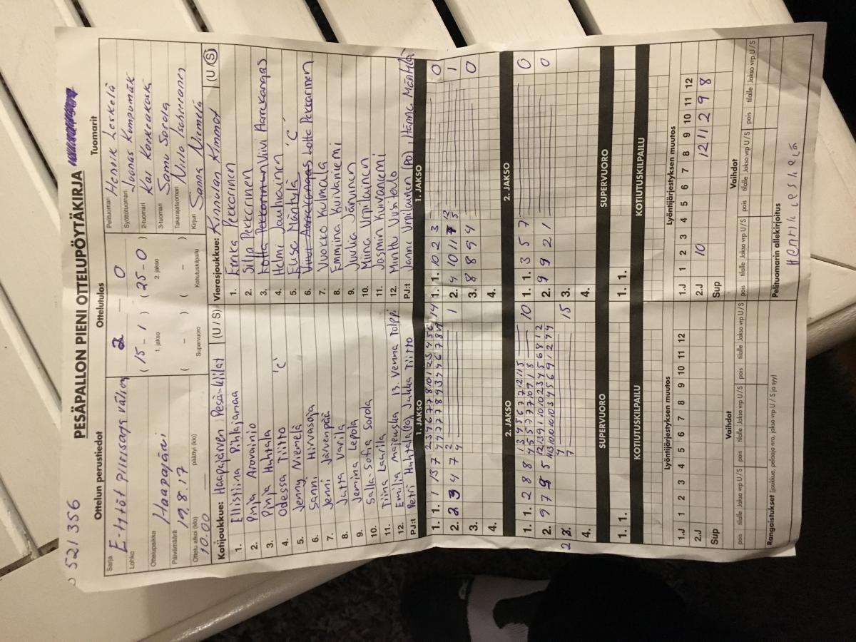 | 521356 | 19.8.2017 | Haapajärvi | Kinnula | 2-0 (15-1, 25-0) | näytä |